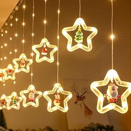 VESPA Eed Special Lights - Featuring 6 Star and 6 Heart-Shaped Lights with Santa Claus Accents, Perfect for Diwali and Indoor Décor (Warm White)