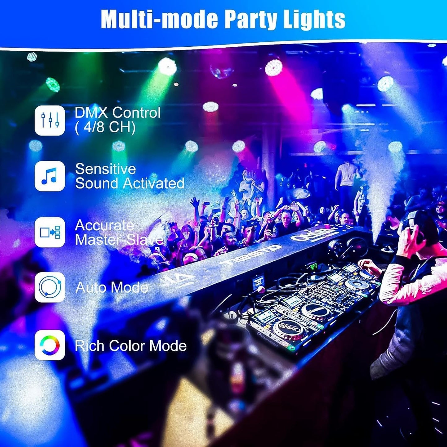 60LED PAR DJ Lights with 7-Channel Mode for Party & Events - Multicolor